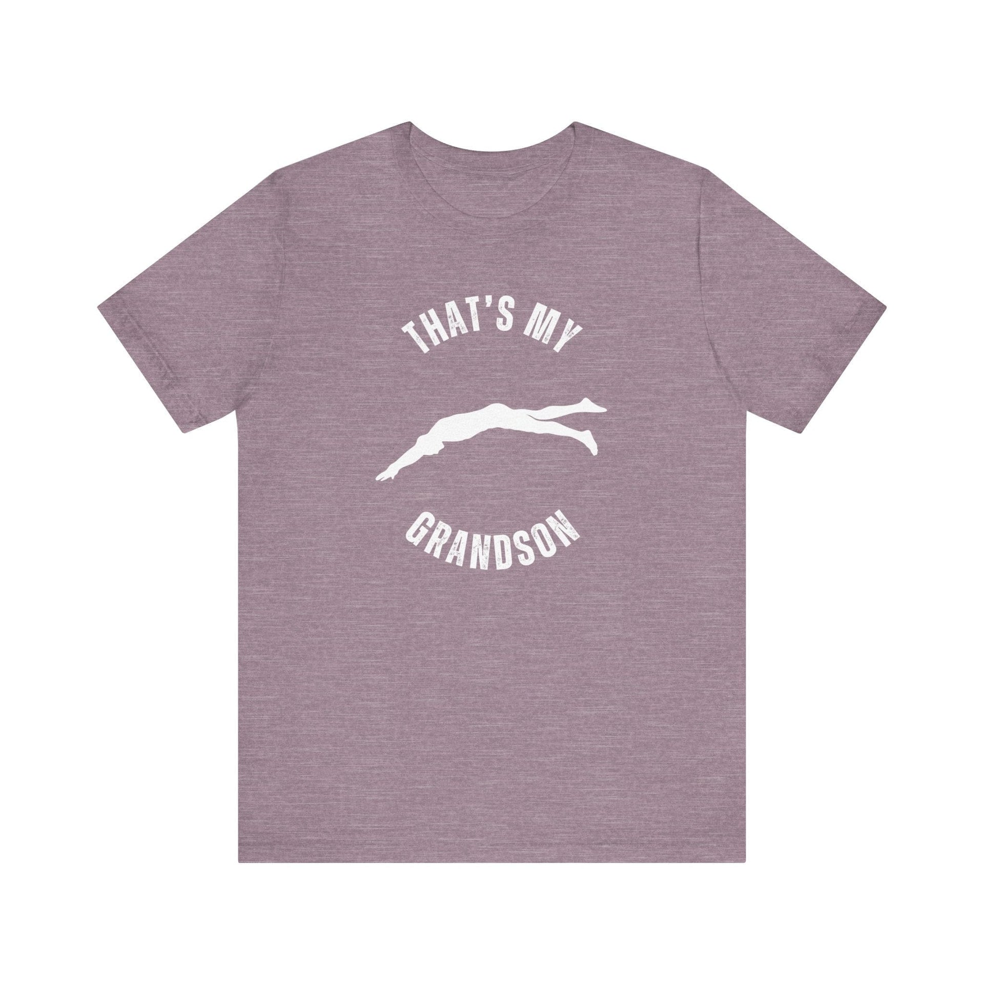 Boost the pride and support for your swimming superstar with our "That's My Grandson" t-shirt. This tee combines superior comfort with a heartfelt message, making it the perfect choice for grandparents who love cheering from the stands. Crafted from lightweight, breathable fabric, it guarantees to keep you cool and comfortable at every swim meet. The classic fit and crew neckline offer a versatile style suitable for any occasion, from poolside cheering to casual outings. Show off your pride and celebrate your grandson's achievements with a Grandparent Swim T-Shirt that exudes the confidence of a proud grandparent!