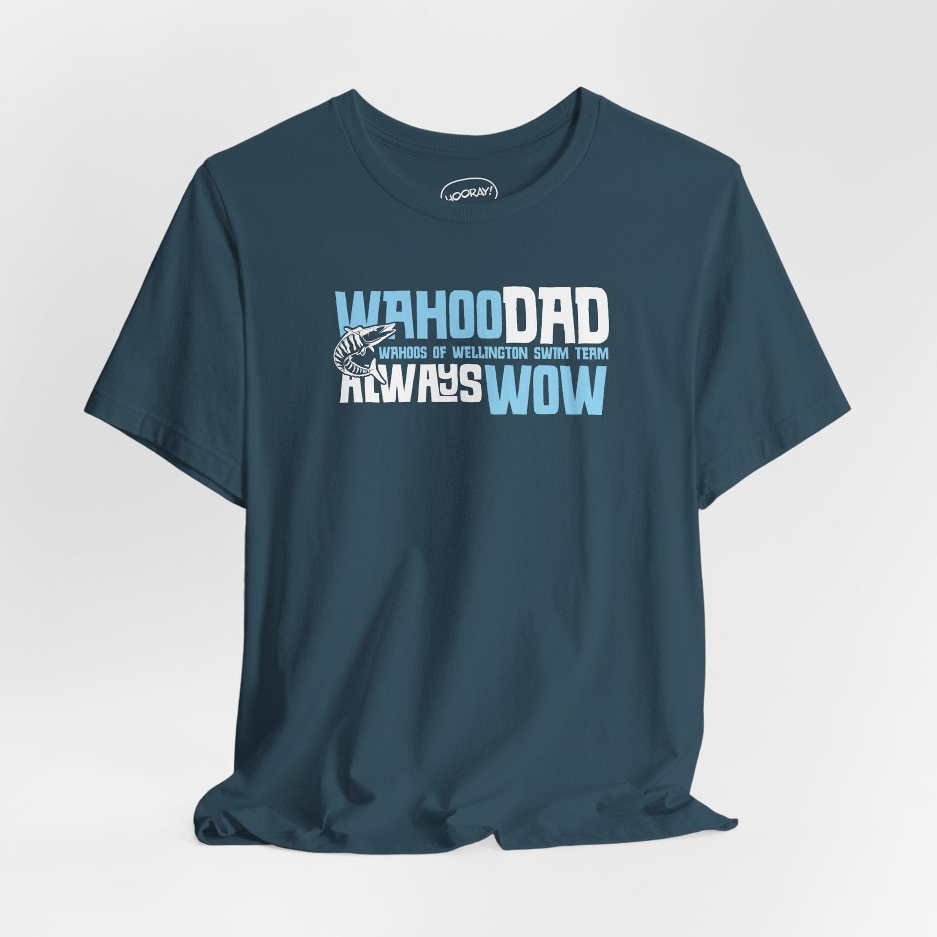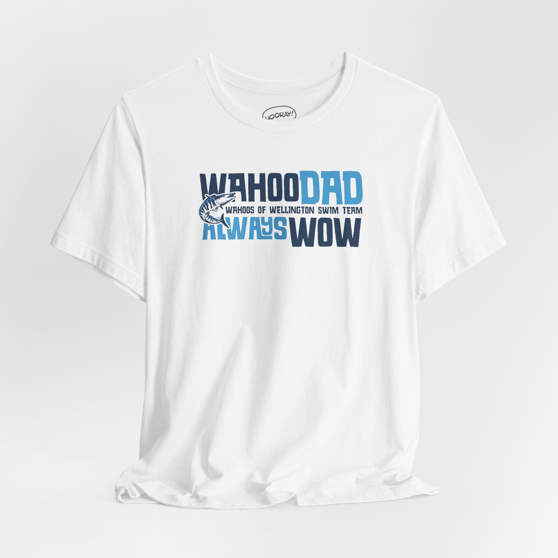 For the dads who are always WOW—Wahoos of Wellington proud! This T-shirt is made for the ultimate swim dad, the one who cheers the loudest, times every lap, and never misses a meet. Whether you're poolside, driving to practice, or just showing off your swim dad status, this tee has you covered in comfort and style. Because being a Wahoo Dad isn't just a title—it's a way of life!