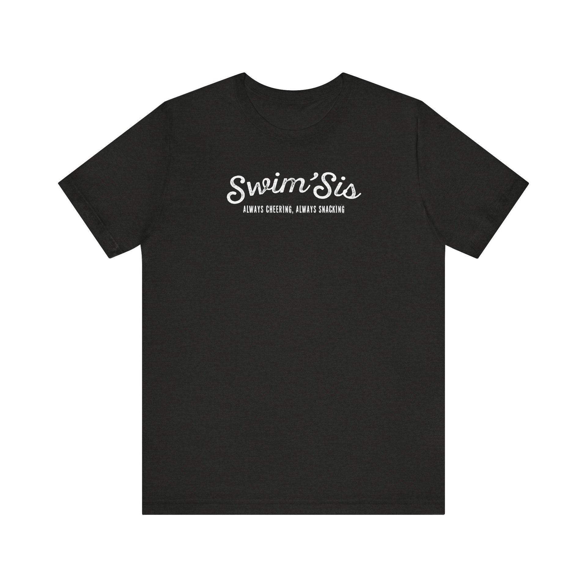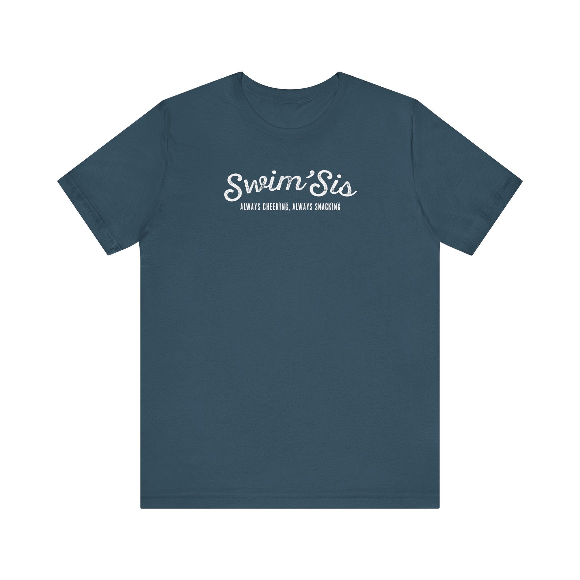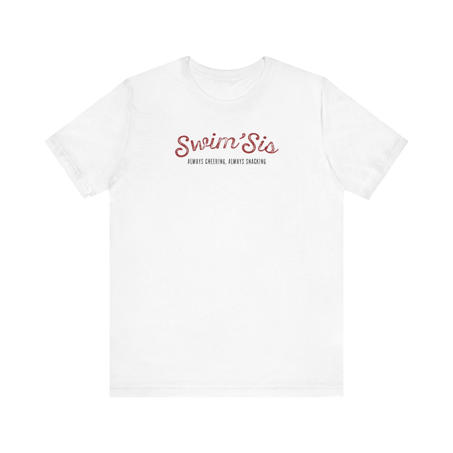 Looking for a fun and lighthearted way to show some love and support for your swimming sibling? Look no further than this Swim Sister Tee! This quirky and cool tee is perfect for cheering them on as they dive into the pool and sneak some snacks while you're at it. It's the perfect way to celebrate the bond between sisters who share a love for swimming and a playful sense of humor. Whether you're cheering from the sidelines or making a splash in the pool together, this Swim Sister Tee is sure to bring a smile to your sister's face and show your solidarity in a light-hearted and fun way.